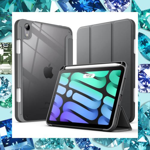 JEDirect iPad mini 6 ケース (8.3インチ、2021モデル) Pencil収納可能 透明バックカバー 薄型 スタンド 衝撃吸収 タブレットカバー オートウェイク/スリープ機能