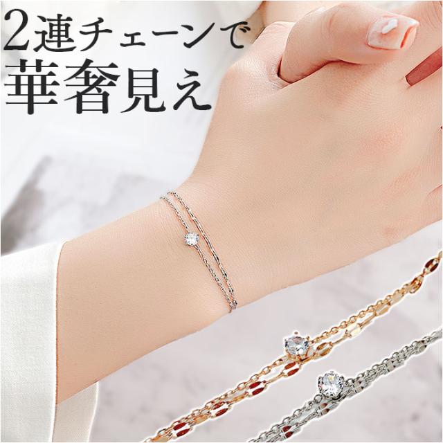 ブレスレット レディース 通販 アクセサリー ジュエリー 2連 大人 ブレス おしゃれ かわいい 大人可愛い 婦人 手首 ステンレス きれいめ 可愛い オフィス 誕生日 クリスマス