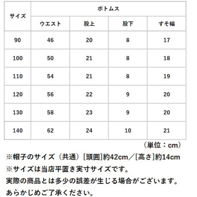 | サイズ | [キッズ] ・90cm ・100cm ・110cm ・120cm ・130cm ・140cm ※サイズについて詳細は、商品画像の中にあるサイズ表をご覧くださいませ。 |