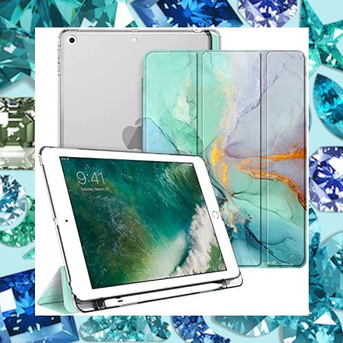 Fintie iPad 9.7 2018 2017 ケース ペンホルダー付き Apple Pencil 収納可能 三つ折スタンド スリープ機能 軽量 薄型 半透明 バックカバ