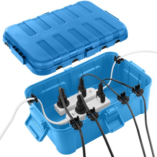 使いやすい:4つのラッチを引いたり押したりするだけで、ボックスを開閉できます。電源を接続し、クランプでコードを留めます。ボックスを壁に取り付けるには、裏側にある2つの鍵穴を使用します。