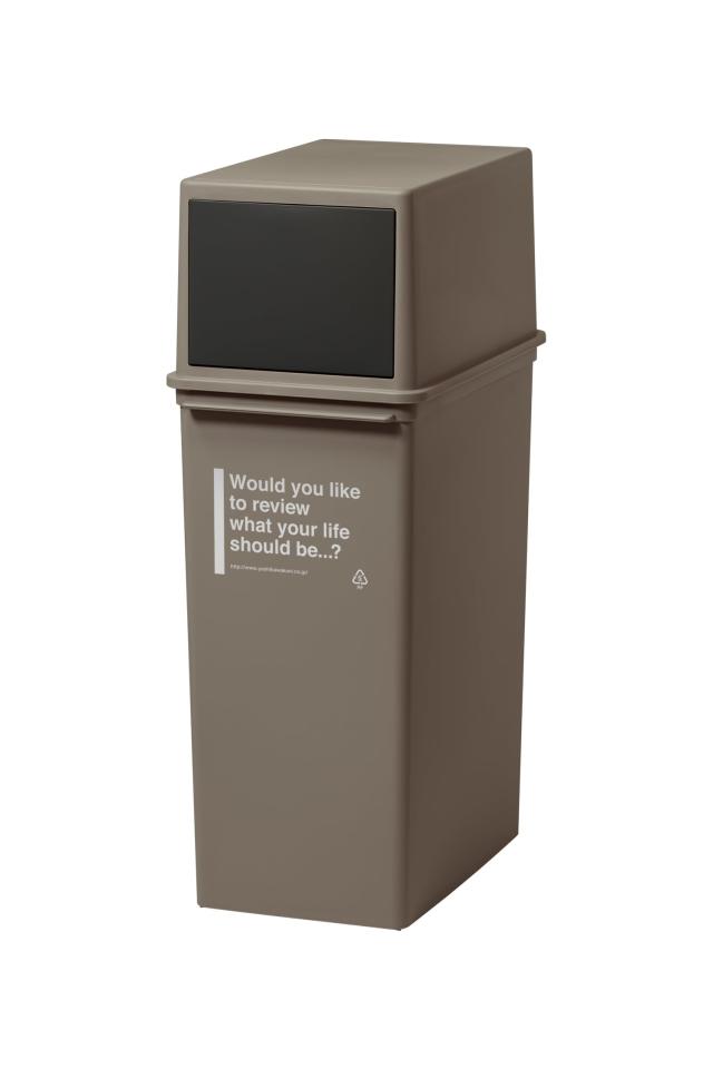 カフェにありそうな、お洒落なフロントオープンタイプダスト。 ゴミ箱がインテリアに変わる、雰囲気のある英字のデザインとワントーンのカラー。 フタの向きを変えてセッティングすれば、英字を隠して他の家具と統一感をもたせることもできる。 細身で縦長の形状は分別用にいくつか並べたくなる。(スタッキング可能) 再生材10%以上配合