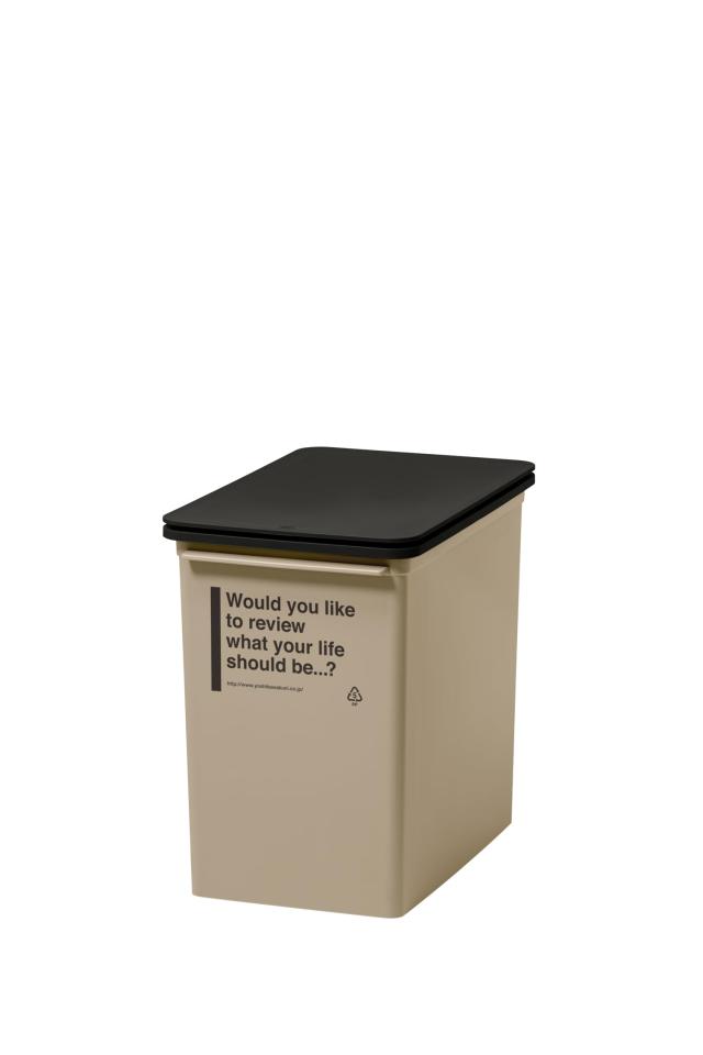 カフェにありそうな、お洒落なフロントオープンタイプダスト。 フタの向きを変えてセッティングすれば、英字を隠して他の家具と統一感をもたせることもできる。 細身で縦長の形状は分別用にいくつか並べたくなる。 再生材10%以上配合