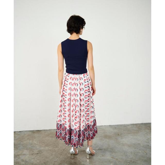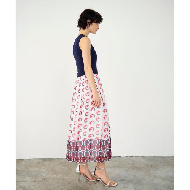 スカートはヴィンテージの資料を基に一からオリジナルで起こして、シフォンの軽やかな生地にプリントしタックを贅沢に入れて、上品に広がる軽やかなシルエットを表現しました。