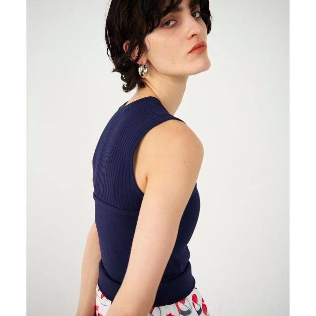ノースリーブ型ですが首元はやや詰まり気味に設定して、夏に相応しい大人のヘルシーな肌見せ感を楽しめる一枚に。