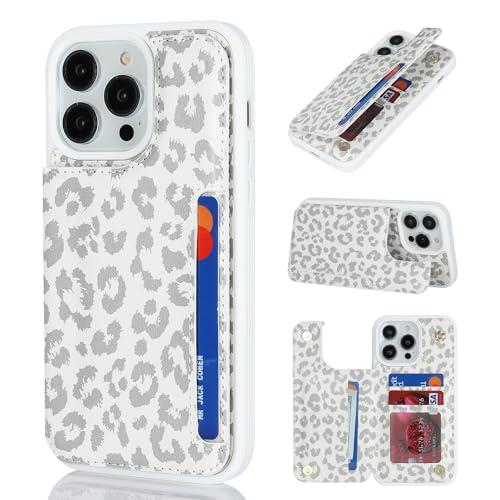 Sailortech i Phone 14 Pro 背面ケース 翻盖型 アイフォン14 Pro ケース アイフォン14 Pro カバー 財布背面手机? 手帳ケース 収納付き 磁気クラスプ 小銭入れ IC カード収納 財布型 実用 横置き機能 防塵 ?量 落下防止 i Phone14 Pro ケース 背面収納 携帯カバー【選べる8色】6.1in-ホワイトレオパード