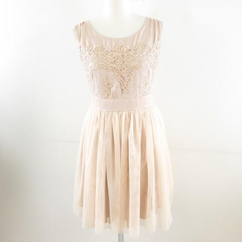【中古】カエン kaene ノースリーブミニワンピース チュール ドレス レース ピンクベージュ 2 *A577 レディース