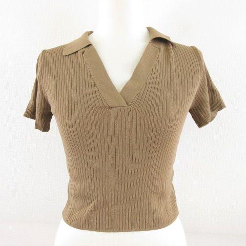 【中古】エゴイスト EGOIST リブサマーニット スキッパー ショート丈 半袖 茶 *A452 レディース