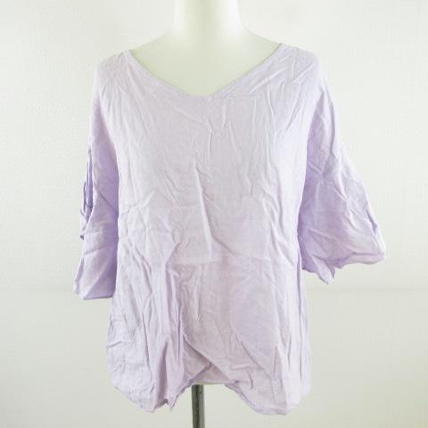 【中古】ジーユー GU フレアスリーブ ブラウス リネンブレンド 半袖 紫 L *A562 レディース