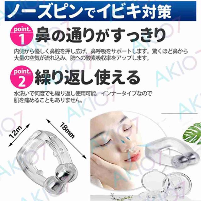 鼻の内側からやさしく鼻腔を広げて、空気の通り道を作ることで無駄な口呼吸を抑えて、スムーズな鼻呼吸を促すノーズピンです。低酸素症による呼吸器系および循環器系の圧力を軽減し、いびきの問題を効果的に解決します。