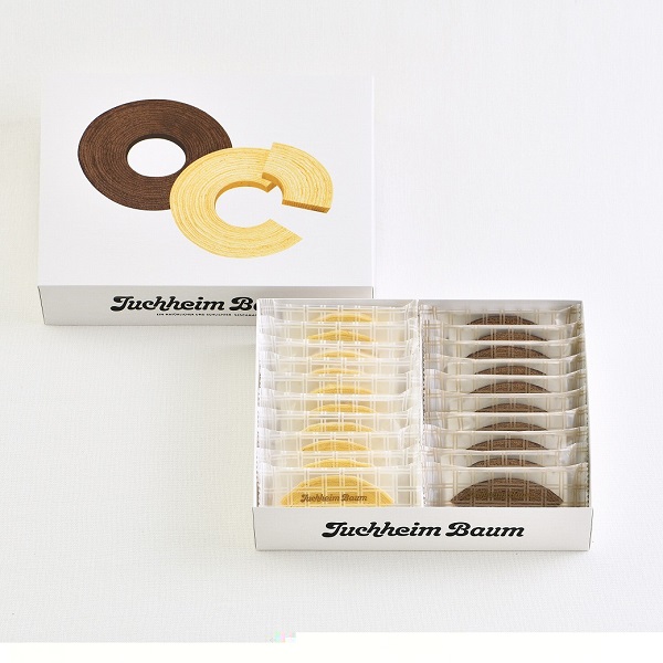ユーハイムの看板商品「バウムクーヘン」を手軽に楽しめる大きさに切り分けました。