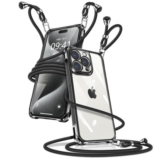 i Phone 15 Pro ケース クリア ショルダー i Phone15Pro スマホケース アイフォン15Pro カバー 肩掛け 斜めかけ 縄掛けケース 透明 薄型 軽