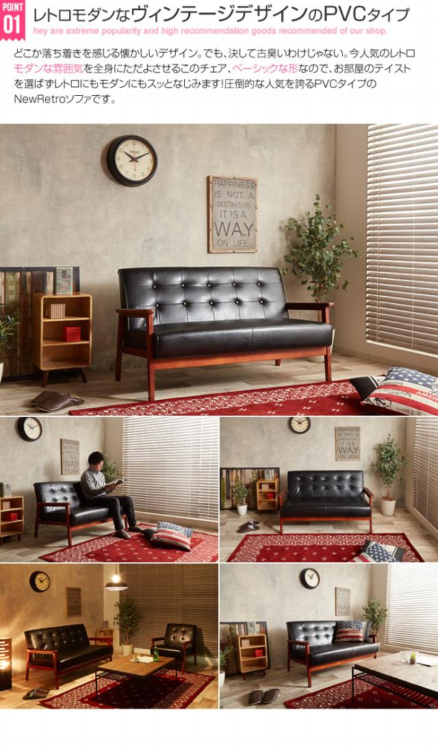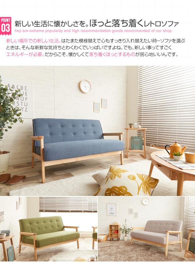 ソファー おしゃれ NEW RETRO オリジナル 2人掛けソファ 肘掛け付き 天然木 快適 シンプル 北欧風 モダン レトロ 男前 カフェ風 リビング 一人暮らし 新生活