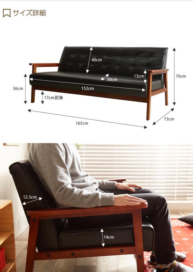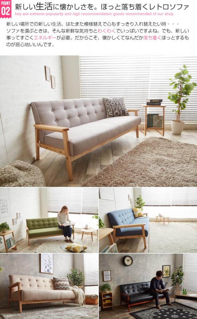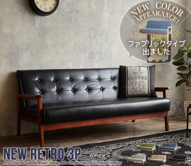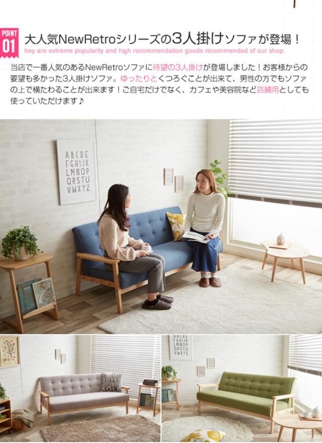 ソファー おしゃれ NEW RETRO オリジナル 3人掛けソファ 肘掛け付き 天然木 快適 クッション性 シンプル 北欧風 モダン レトロ 男前 カフェ風 リビング 新生活