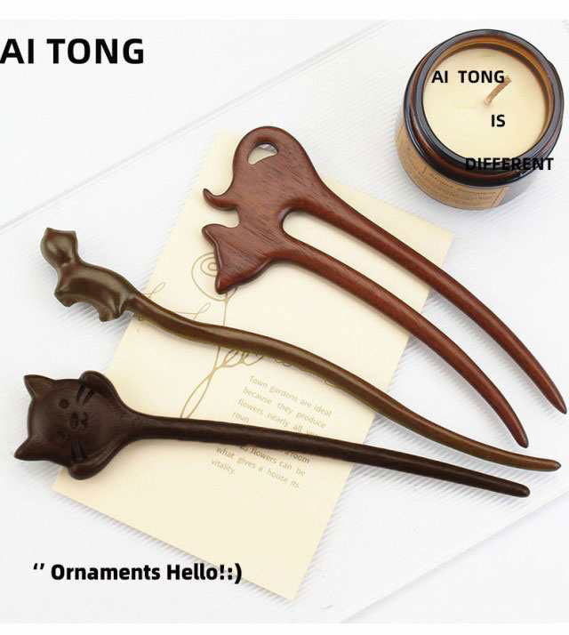 かんざし 猫モチーフ 木製 ヘアアクセサリー 髪飾り ネコ キャット 大人っぽい シンプル 可愛い おしゃれ プレゼント 普段使い 浴衣 着物