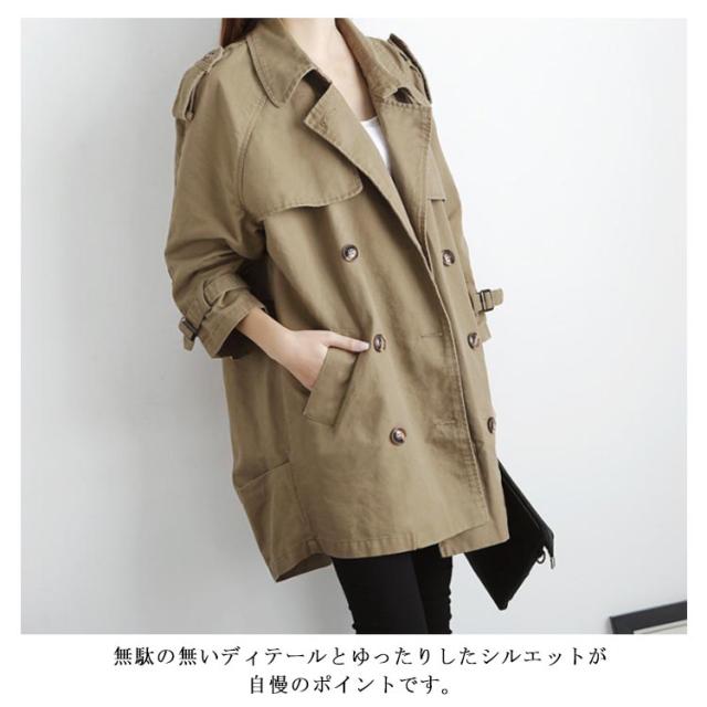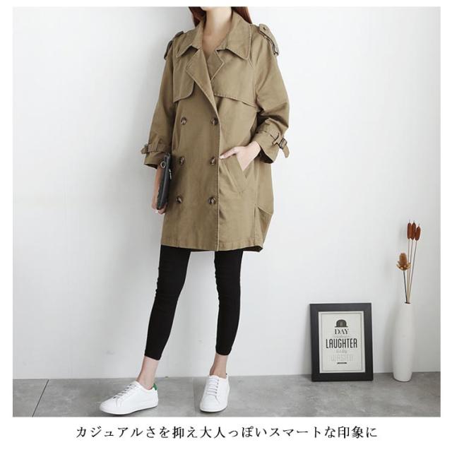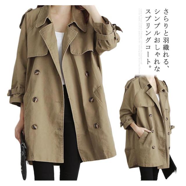 | さらりと羽織れる、シンプルおしゃれなスプリングコート。 フロントダブルボタンデザインが洗練された印象に 無駄の無いディテールとゆったりしたシルエットが自慢のポイントです。 厚すぎず、薄すぎず、柔らかな綿混素材を採用して、まだ寒さ残りの初春にぴったりの厚さです。 カジュアルさを抑え大人っぽいスマートな印象に この春持っておくと、コーデの幅がぐっと広がる1枚です! | |