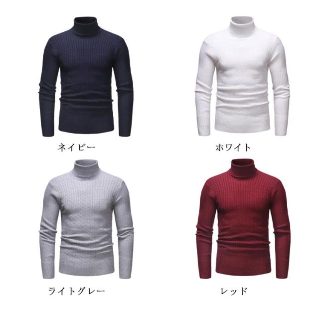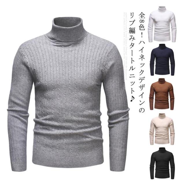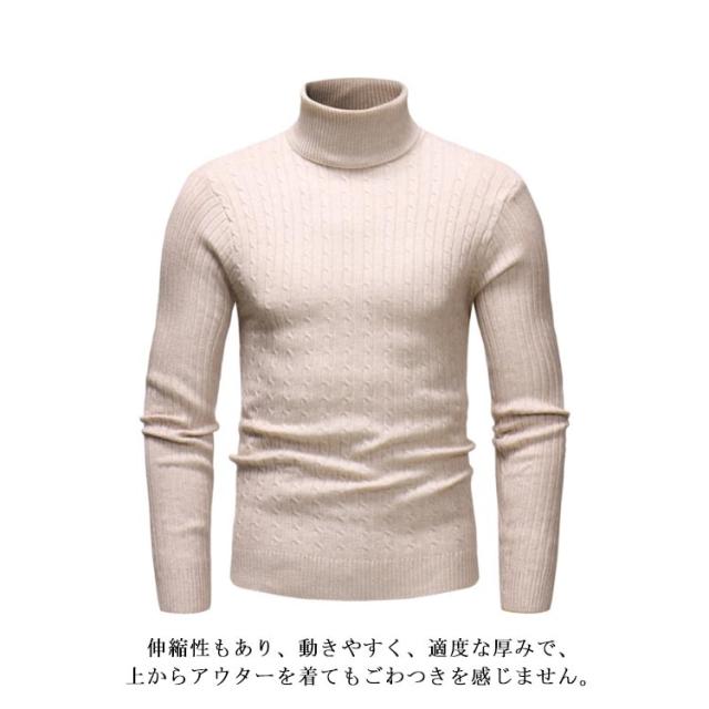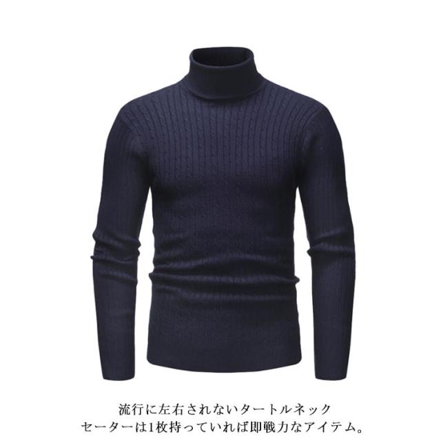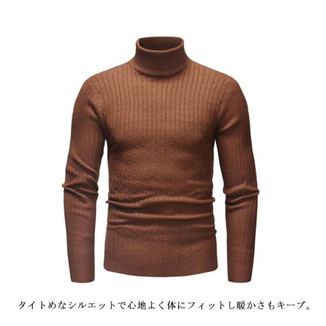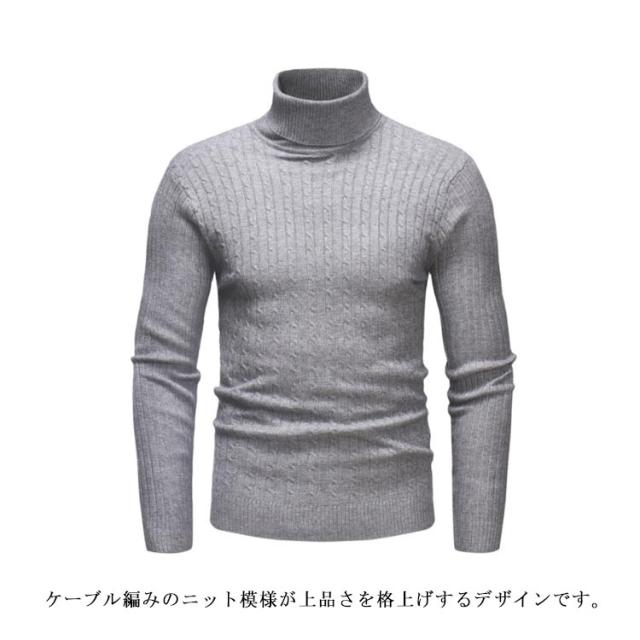 送料無料 タートルニット メンズ 長袖 セーター トップス ケーブル編み タートルネック 無地 タイト おしゃれ メンズファッション 秋冬物
