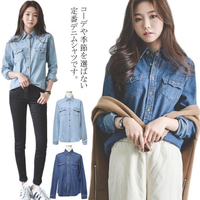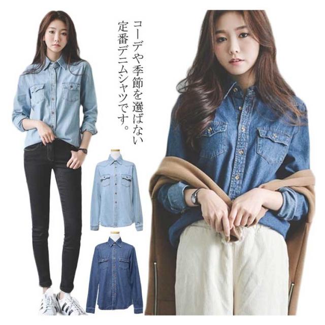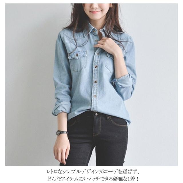 レトロ デニム 長袖 シャツ ジャケット ライトアウター 春 秋冬