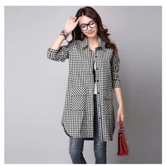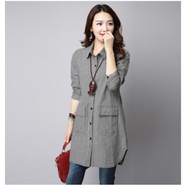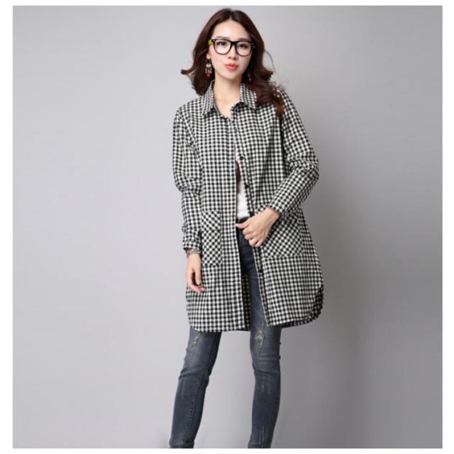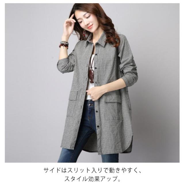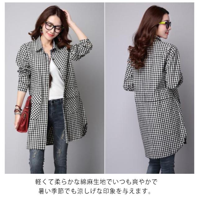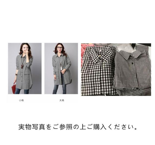S-3XLサイズ!チェック柄ロングシャツ シャツ ロング丈 ギンガムチェック ロングシャツ チュニック 長袖 カジュアルシャツ ポケット付き 大きサイズ 春服 秋服 おしゃれ レディース