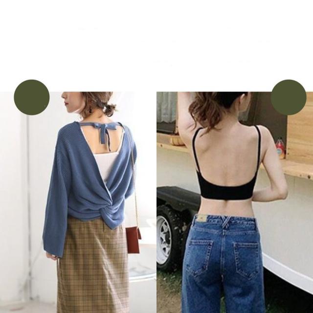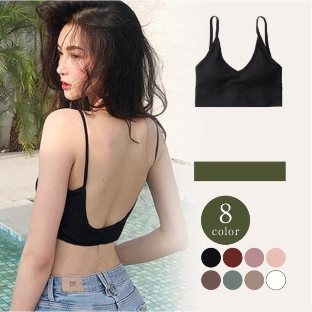 キャミソール バックオープンハーフブラトップ 背中あき8カラー