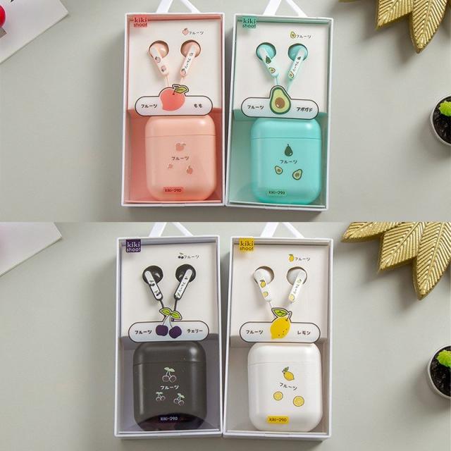 イヤホン 有線 3.5mm マイク付き 収納ケース 4色 フルーツ柄 音量調整 高音質 重低音 ハンズフリー通話 ファッション かわいい 小型 軽量 通勤 通学 旅行