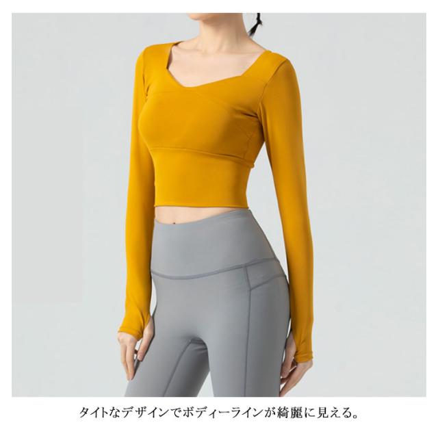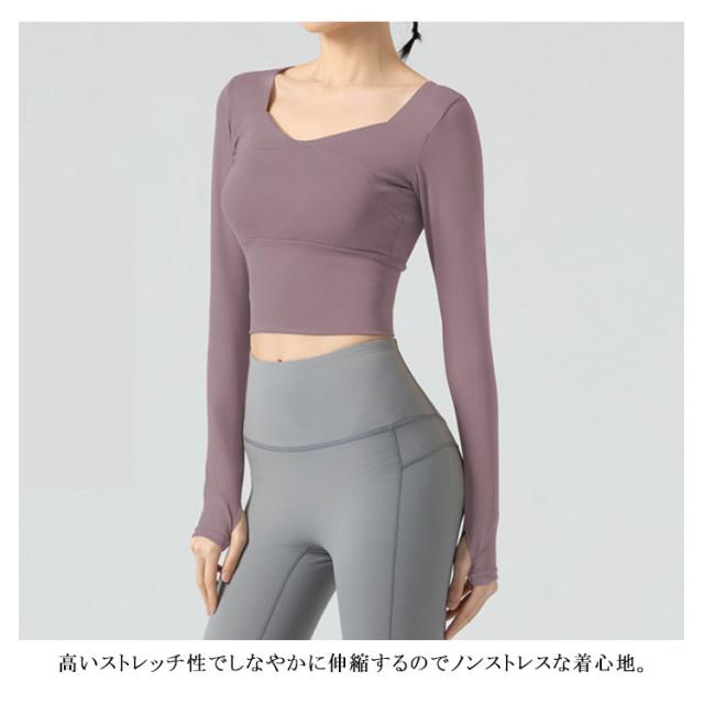 送料無料 ヨガウェア レディース トップス タンクトップ風 長袖 カップ付き ストレッチ 吸汗速乾 スポーツ スポーツウェア フィットネス ジムウェア 運動会 スポーツ ランニング ウォーキング マラソン ピラティス
