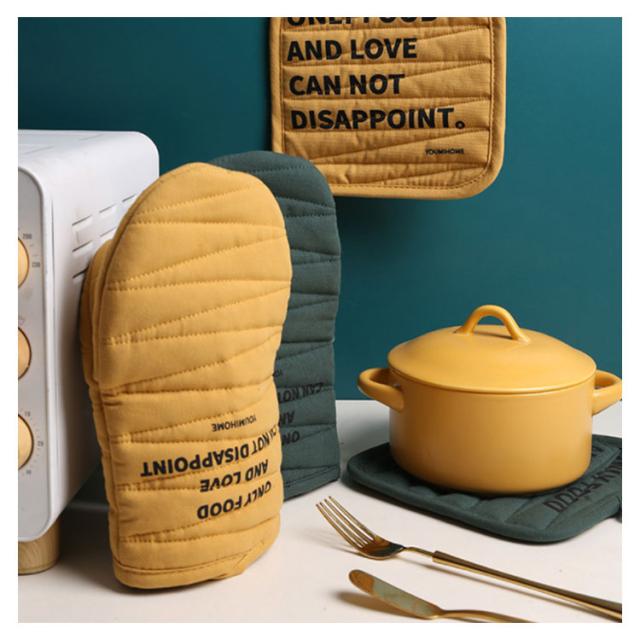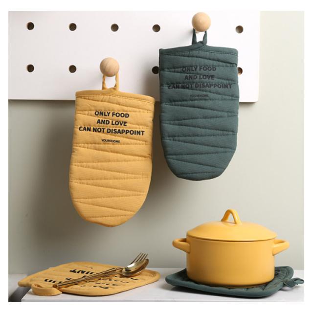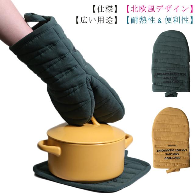 北欧風 耐熱鍋つかみ 耐熱ミトン 北欧デザイン オーブンミトン ストライプ キッチンミトン 綿製 厚手 両手 耐熱温度200℃ 耐熱手袋 滑り止め 断熱グローブ 色落ちない 左右兼用