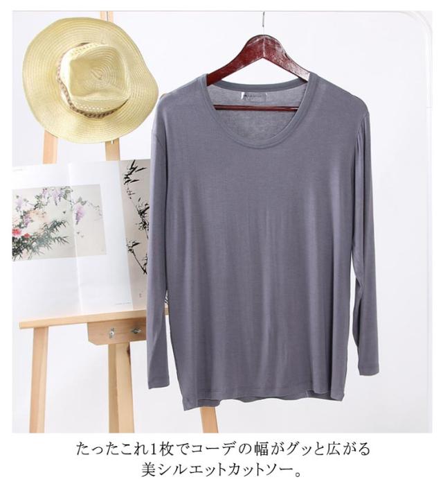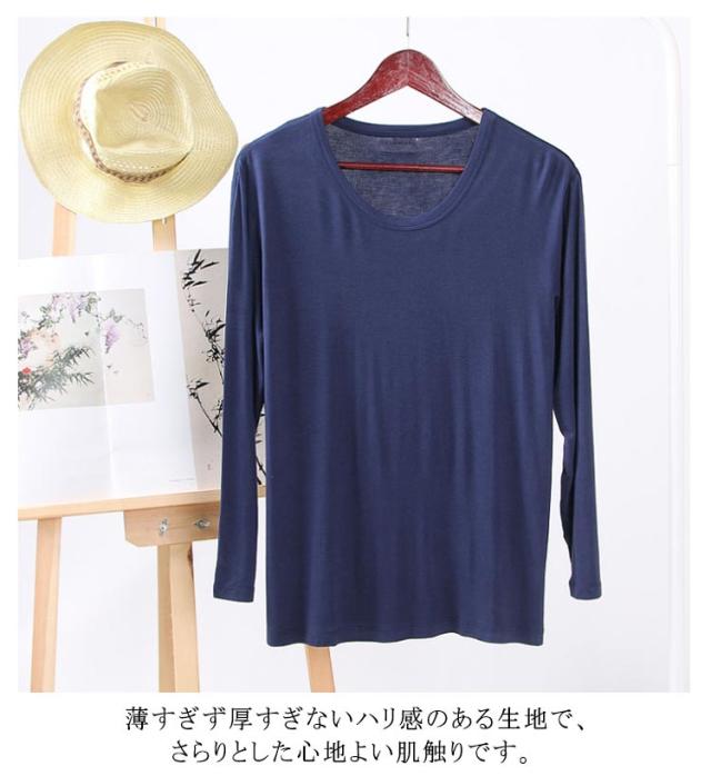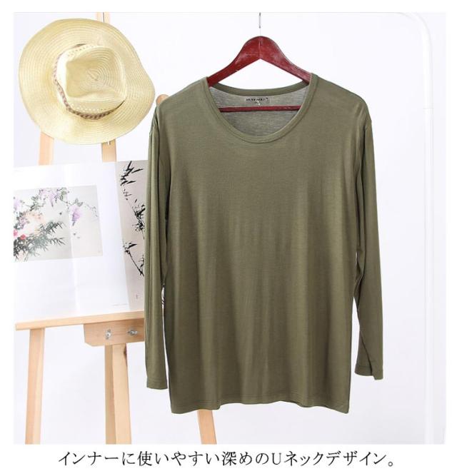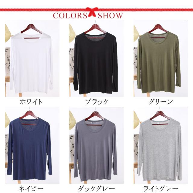 送料無料 tシャツ メンズ インナー 無地 Uネック ストレッチ インナーTシャツ 長袖 ロンTシャツ カットソー ロンT トップス シンプル カジュアル モダール 快適 薄手 全6色 L LL XL 3XL 4XL 大きいサイズ