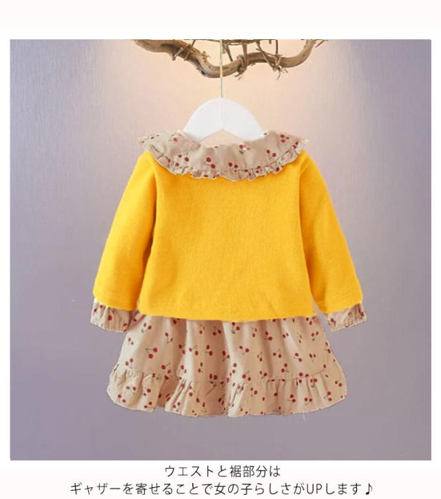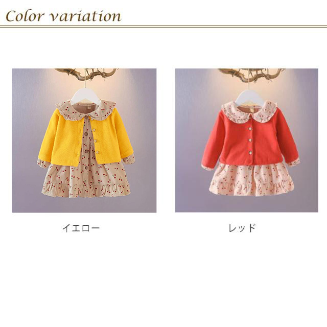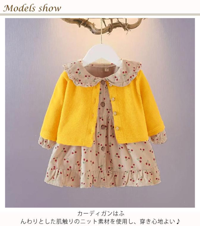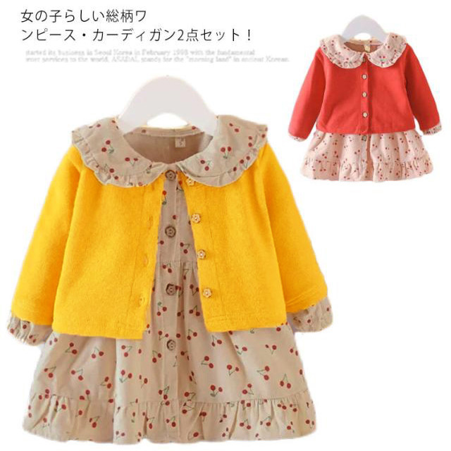| 女の子らしい総柄ワンピース・カーディガン2点セット! カーディガンはふんわりとした肌触りのニット素材を使用し、穿き心地よい♪ ウエストと裾部分はギャザーを寄せることで女の子らしさがUPします♪ これからの季節にピッタリな一枚です。 通園通学はもちろん、デイリーにだってどんどん着回したい! | |