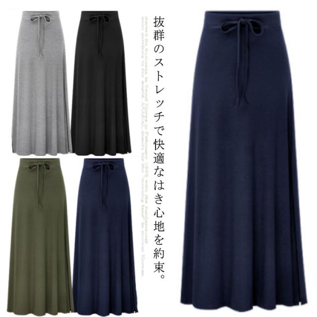 ニットスカート ロング丈 フレアスカート マキシ丈 タイトスカート レディース ウエストゴム サイドスリット ストレッチ 送料無料 おしゃれ 無地 シンプル エレガット カジュアル きれいめ 通勤 OL