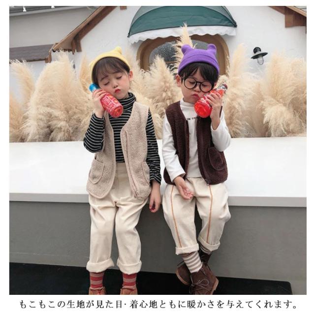 ボアベスト キッズ チョッキ 秋冬 男の子 女の子 無地 ふわふわ モコモコ ベビーベスト ベスト 子供服 トップス 上着 羽織り 防寒 保育園 通学 80cm 90cm 100cm 110cm 120cm 130cm 140cm 150cm
