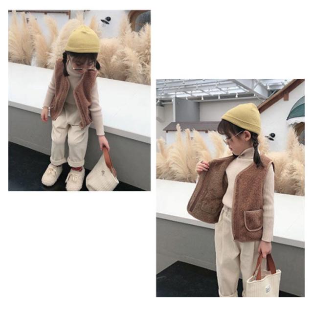 | シンプルデザインでどんな服にも合わせやすいキッズベスト! もこもこの生地が見た目?着心地ともに暖かさを与えてくれます。 気軽に温度調整をしやすく、季節の変わり目から秋冬まで大活躍です。 外出時も家で着る時もとても便利です。 | |