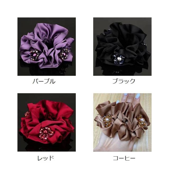 シュッシュ ヘアアクセサリー ポニーテール ヘアアクセサリ 大きめ おしゃれ ボリューム まとめ髪 シンプル 大 人気 大きめ パープル ブラック レッド ブラウン 華やか 送料無料