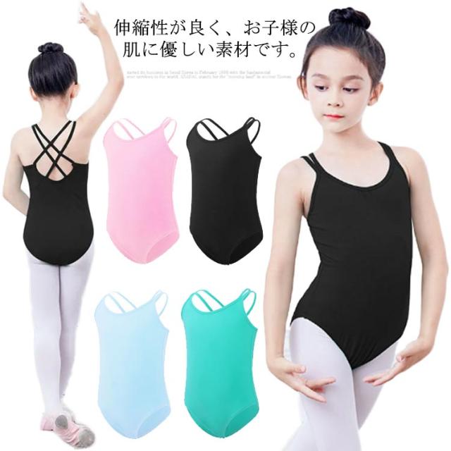 バレエ レオタード 子供 キャミソール 肩紐 ジュニア シンプル 100 110 120 130 140 150 160 170 スカートなし 黒 ブラック ピンク ストレッチ 伸縮 綿 送料無料