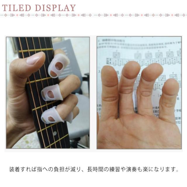 | 指の痛みが軽減できるシリコン製指先保護プロテクター。 装着すれば指への負担が減り、長時間の練習や演奏も楽になります。 弦へのタッチも違和感なく、ぴったりフィット、弦による圧力から指先を保護する。 通気性の良いデザインで蒸れにくく、指先を爽やかに保つことができます。 耐久性が高く、洗って何度もご使用いただけます。 | |