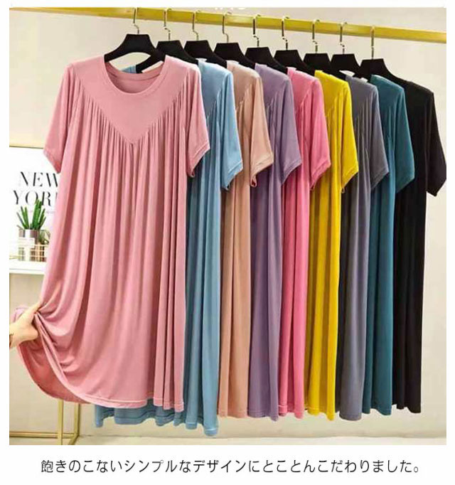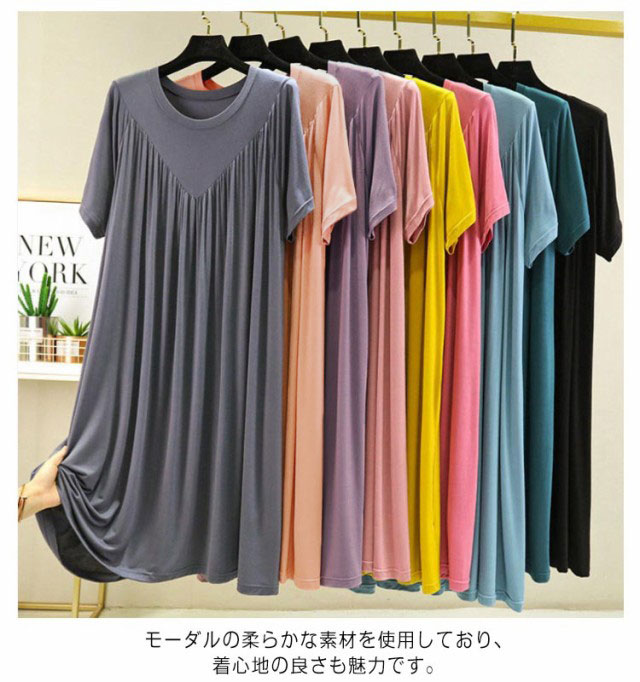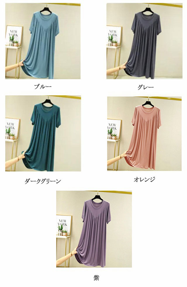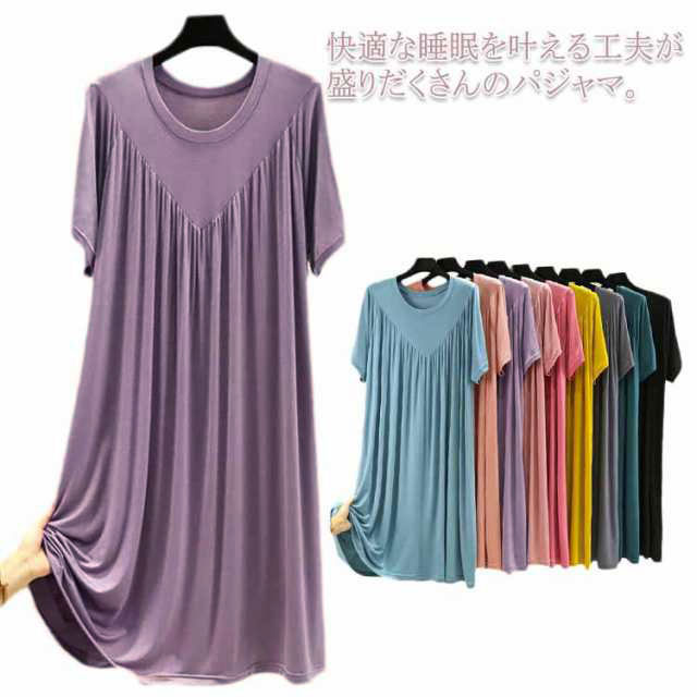 パジャマ レディース 半袖 ワンピース ルームウェア 部屋着 寝巻き 女性 プリーツ ワンピース 春 夏 かわいい ストレッチ モーダル ナイトウェア リラックスウェア ワンマイルウ ゆったり 無地 入院 マタニティ 産後 母の日 プレゼント