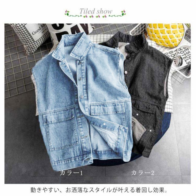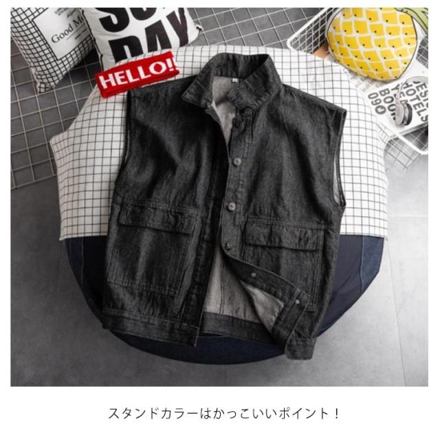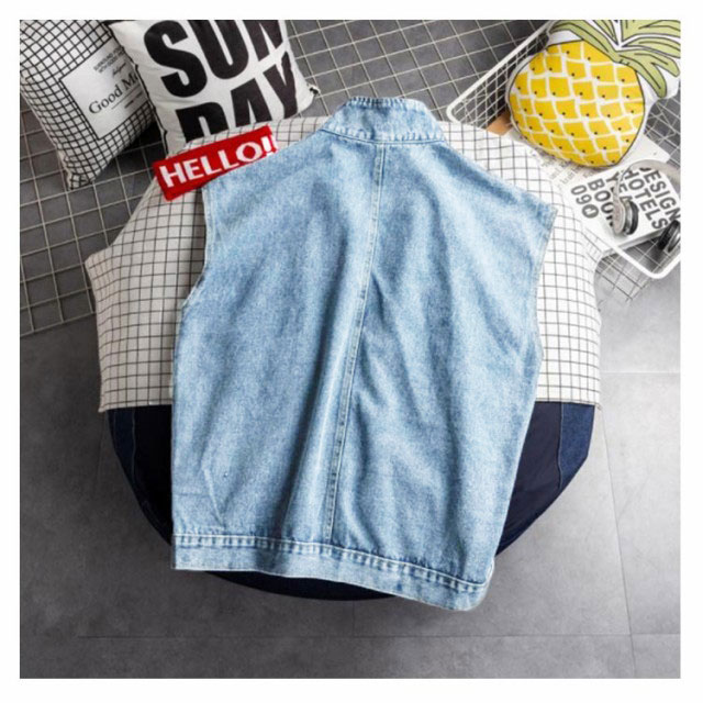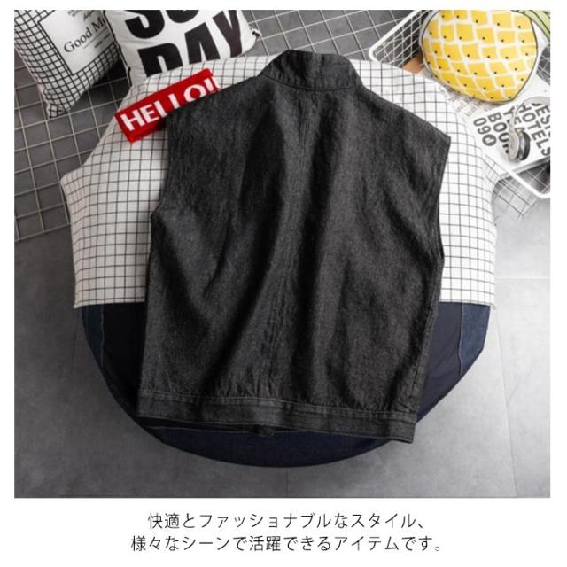 デニムジャケット メンズ レディース ノースリーブ デニムベスト デニム アウター ジャケット ベスト 大きめポケット スタンドカラー アウター カジュアル 通学 カジュアルジャケット BF系 カップル S-2XL
