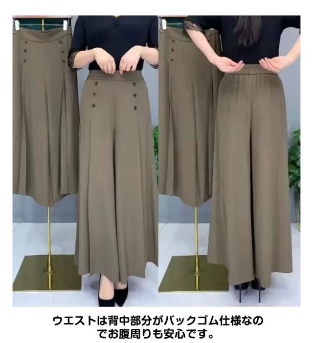 春 レディース 20代 キュロットパンツ 50代 ロングパンツ ハイウエスト 夏 ワイドパンツ スカーチョ ポケット付き ワイドシルエット 無地 薄手 カジュアル ウエストゴム 30代 40代 ガウチョパンツ