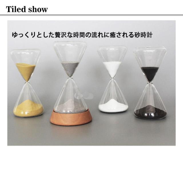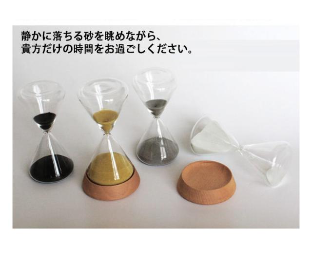 | 贅沢な時間に癒されるおしゃれな砂時計 ゆっくりとした贅沢な時間の流れに癒される砂時計 シンプルでスタイリッシュなフォルムの砂時計は、オブジェとして置いておくだけでも美しいインテリアになります。 静かに落ちる砂を眺めながら、貴方だけの時間をお過ごしください。 | |