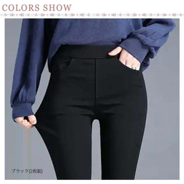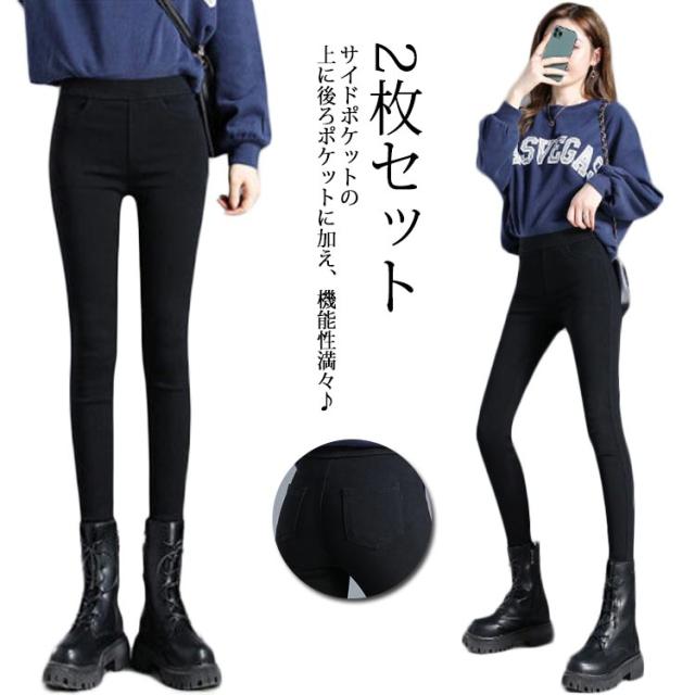 送料無料 2枚セット スキニーパンツ レディース 春 秋 黒 ハイウエスト レギンスパンツ レギパン 4つポケット付き 美脚 大きいサイズ 伸縮 ストレッチ 脚長 シンプル 定番 カジュアル ブラック 無地 ボトムス ズボン ロングパンツ