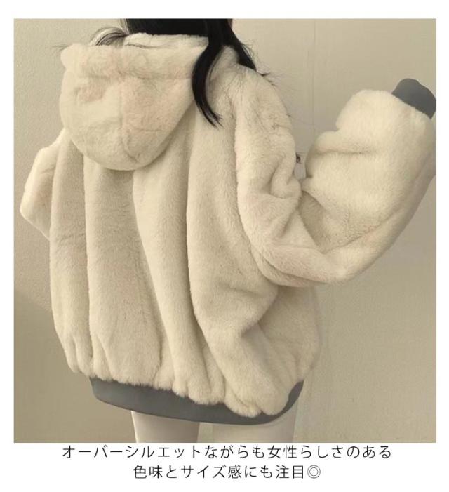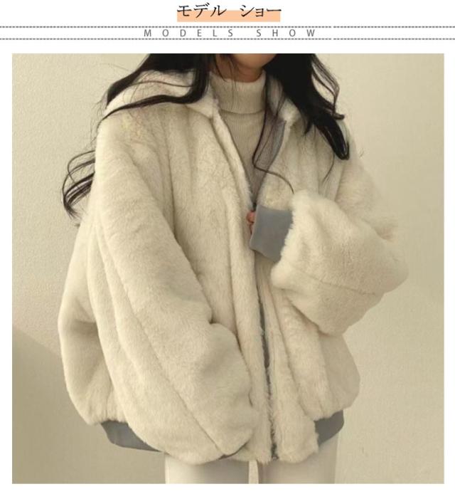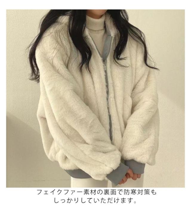 ブルゾン リバーシブル ファー ジャケット レディース ボアブルゾン ファージャケット 2way リバーシブル 裏ボア 裏起毛 アウター ふわふわ もこもこ あったか 暖かい 長袖 フード付き ショート ゆったり ビッグシルエット 秋 冬 防寒 大人 カジュアル 秋 冬 秋服 送料無料