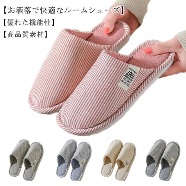 送料無料 スリッパ 室内 来客用 ルームシューズ 静音 滑り止め 無地 シンプル 男女兼用 綿リネン 洗える 室内履き 洗える オールシーズン 柔らかい あったか 抗菌 素足 ソフトタイプ 通気性 ストラップ ルームスリッパ レディース メンズ 春用 夏用 秋用 冬用