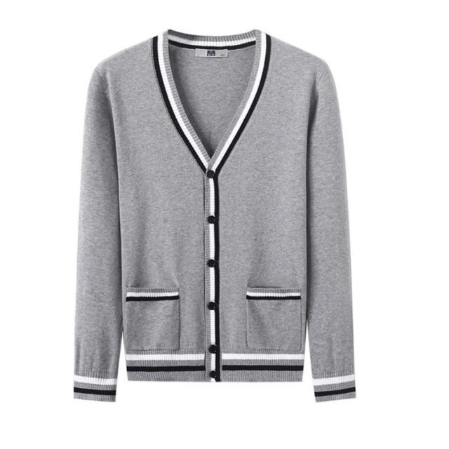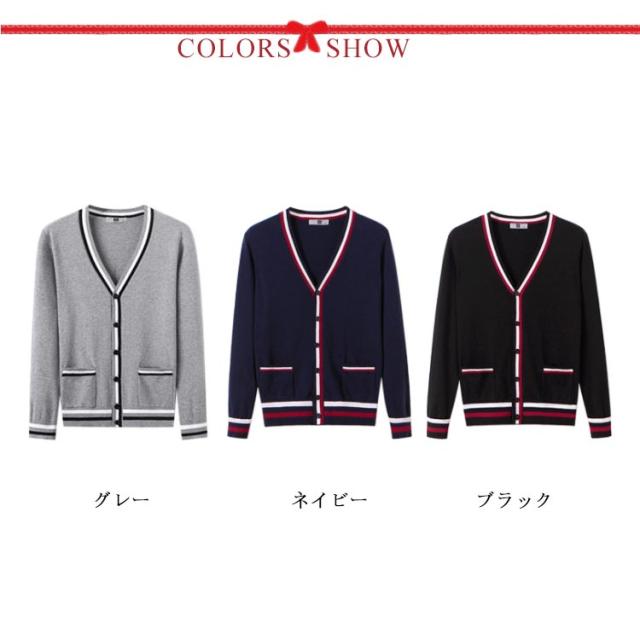 カーディガン 事務服 ニット 長袖 Vネック 前開き ライン メンズ レディース 綿素材 毛玉防止 オフィス ワークウェア ロングシーズン 春 秋 全3色