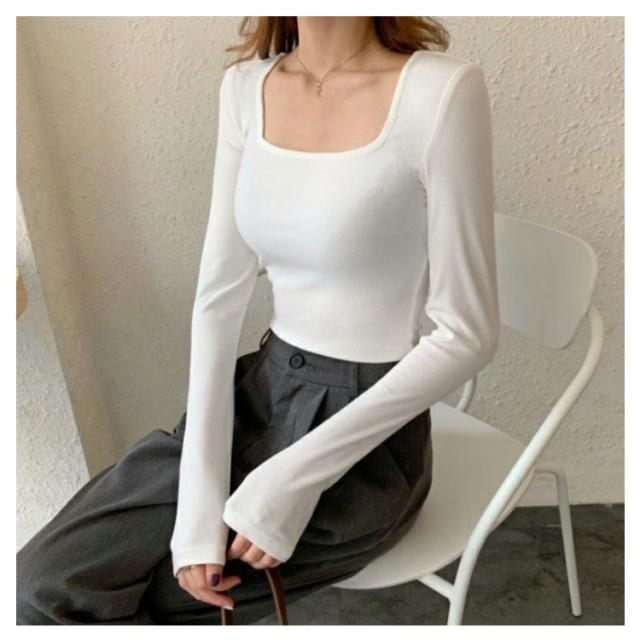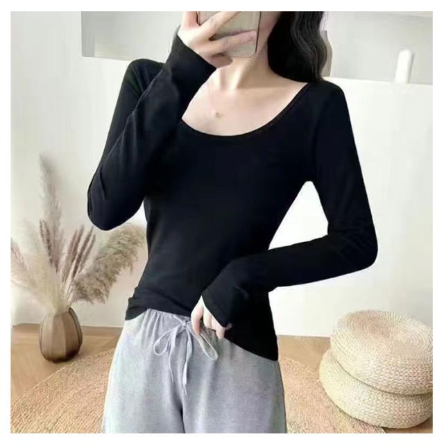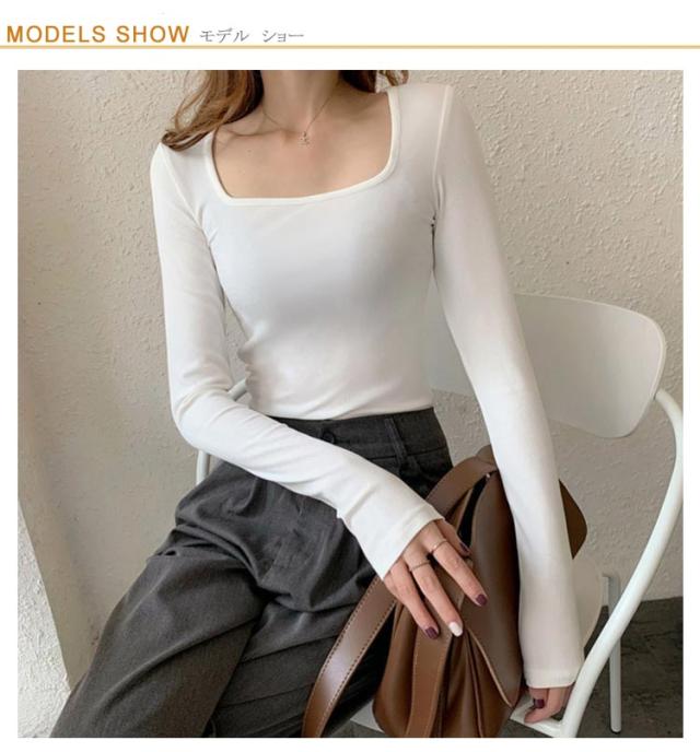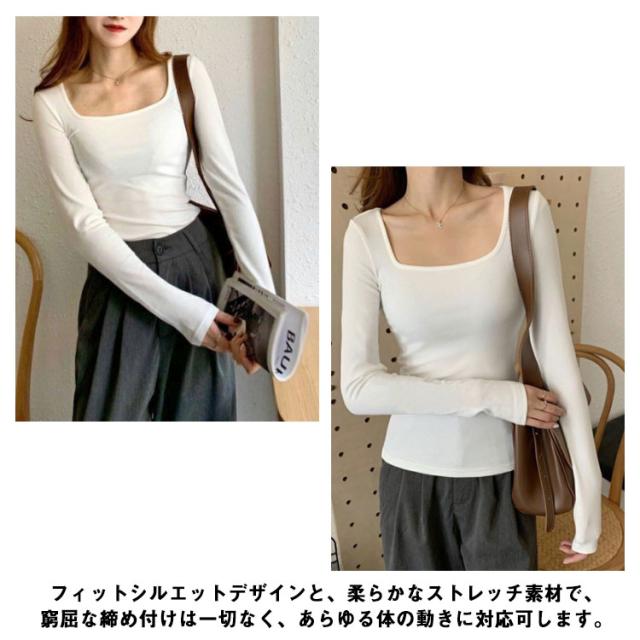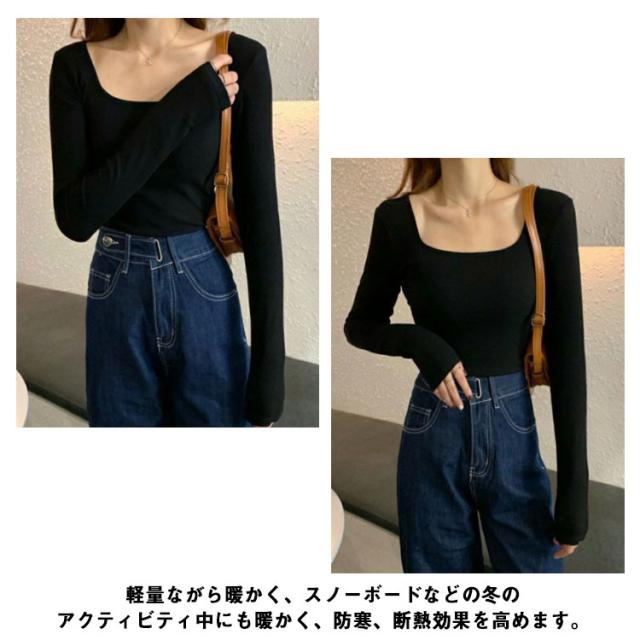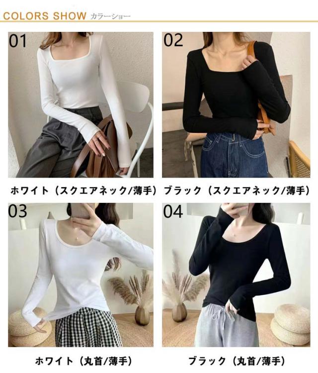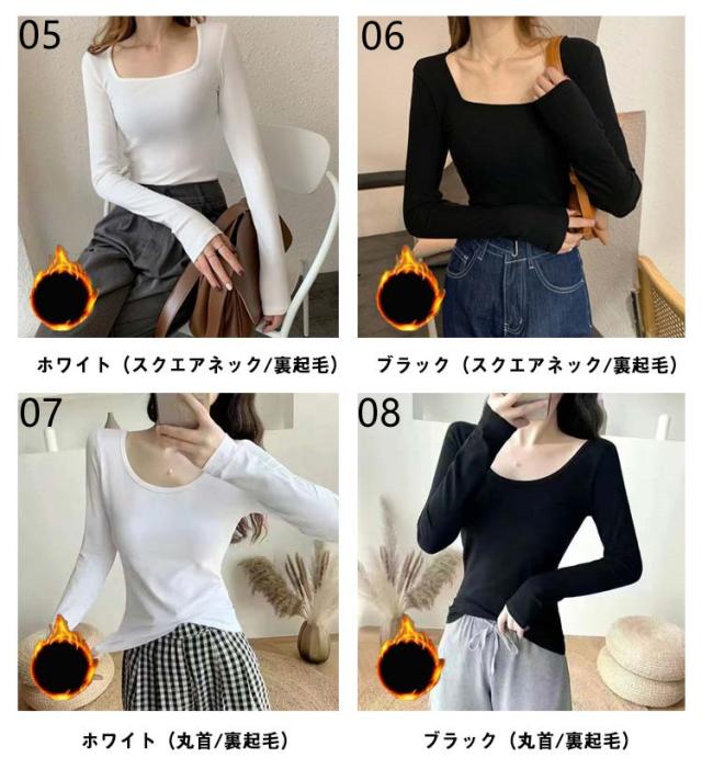裏起毛 Tシャツ レディース カットソー 長袖 トップス 白 ロンt 黒 スクエアネック/丸首 インナーtシャツ インナー レディース トップス プルオーバー スリム フィット 細身 ストレッチ 伸縮性 厚手 秋冬 暖かい 薄手 カットソー レイヤード 送料無料