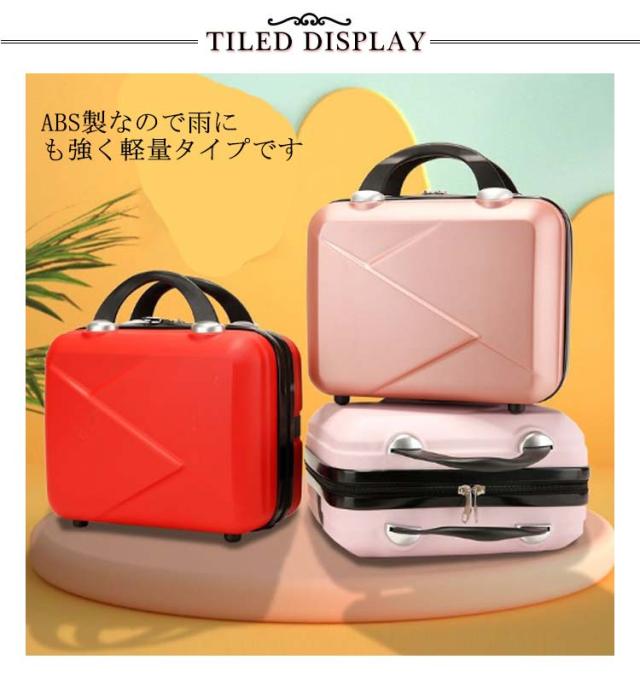 | ちょっとしたお出かけから旅行まで使えるミニスーツケース。 ABS製なので雨にも強く軽量タイプです 手持ち部分でフィット感が良く、手提げバッグとしても使用できます。 出張と旅行の時にスーツケースだけでなく、化粧ポーチとして大活躍間違いなし。 シンプルでオシャレなトレンドカラーから好みに合わせて選べます | |
