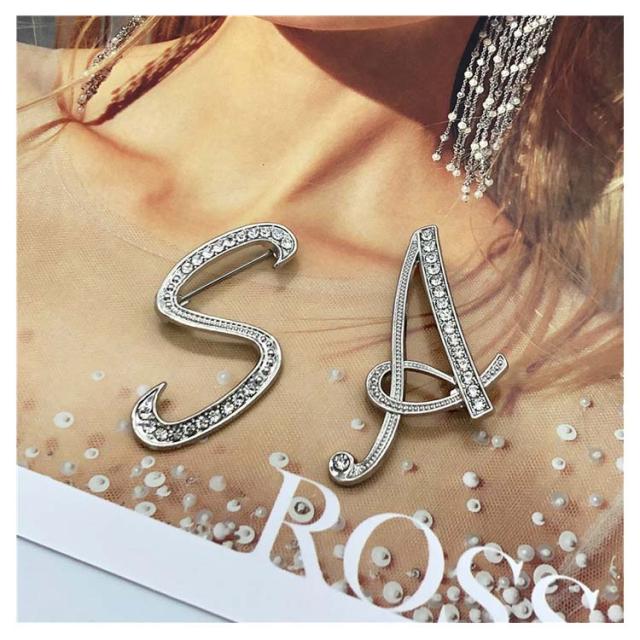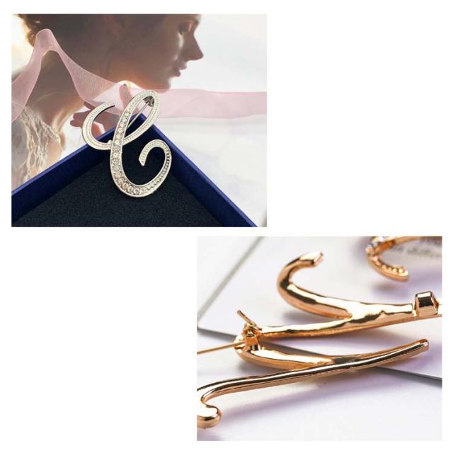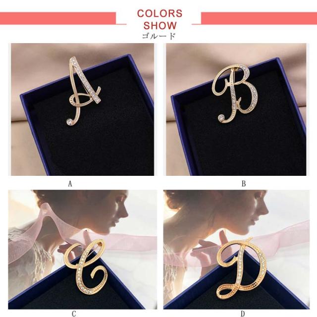 イニシャルブローチ ブローチ コサージュ アルファベット エレガント 入学式 入園式 卒業式 卒園式 結婚式 成人式 パーティー オフィス アクセサリー おしゃれ キラキラ 上品 プレゼント 送料無料