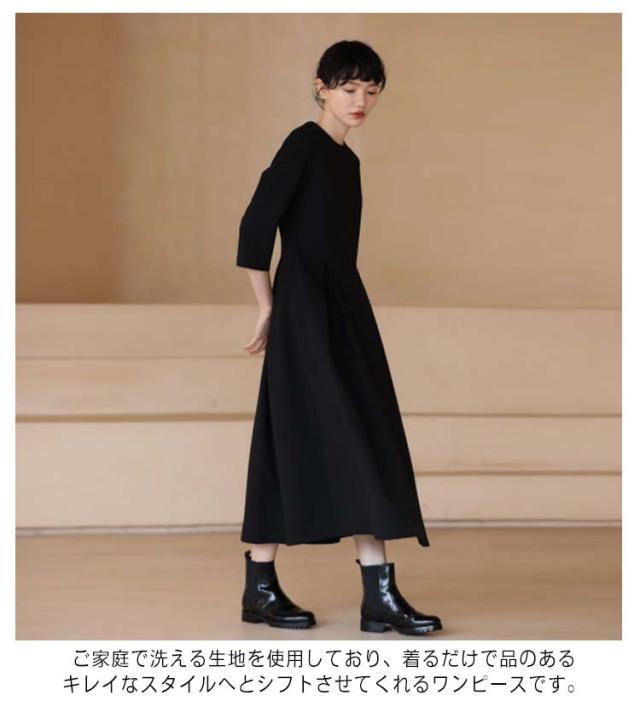| 洗練された印象を放つ主役級の存在感があるクラシカルな雰囲気のワンピース。 クールネックがデコルテ部分を綺麗に見せてくれます。 ウエストのタックフレアのデザインが、上品なフレアシルエットに仕上げ、大人フェミニンな印象に。 ボレロやネックレス、バッグなども合わせやすいシンプルなフォルムと肘が隠れる上品な七、八分袖で合わせるアイテム次第で一年中着ることができます。 ご家庭で洗える生地を使用しており、着るだけで品のあるキレイなスタイルへとシフトさせてくれるワンピースです。 七五三参りや卒園式・入園式・卒業式・入学式・謝恩会などのセレモニー参加や招待客としては最適! キレイめの清楚系ワンピースとしてオフィスまでの通勤にも使えることから、50代・60代以上のお母さま世代からも高い評価を頂戴しております。 | |