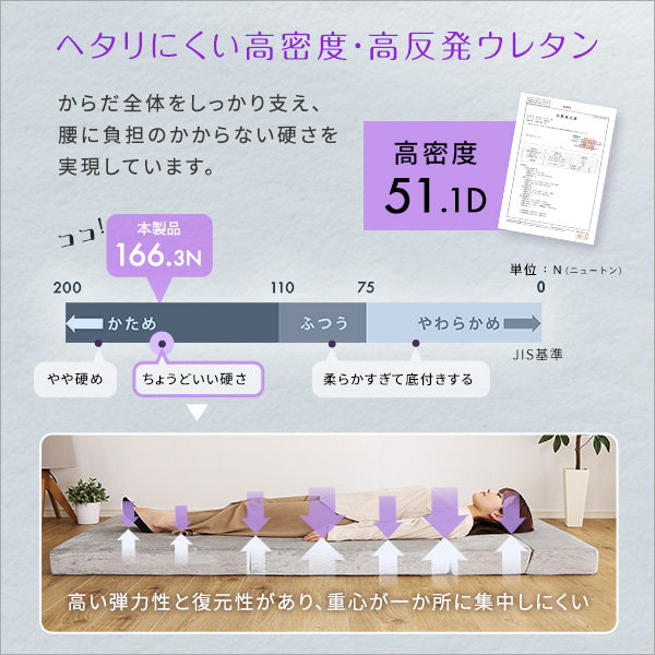 ●10cmの厚みなので、からだに負担をかけにくく、床に直接敷いても底付き感がなく快適です!