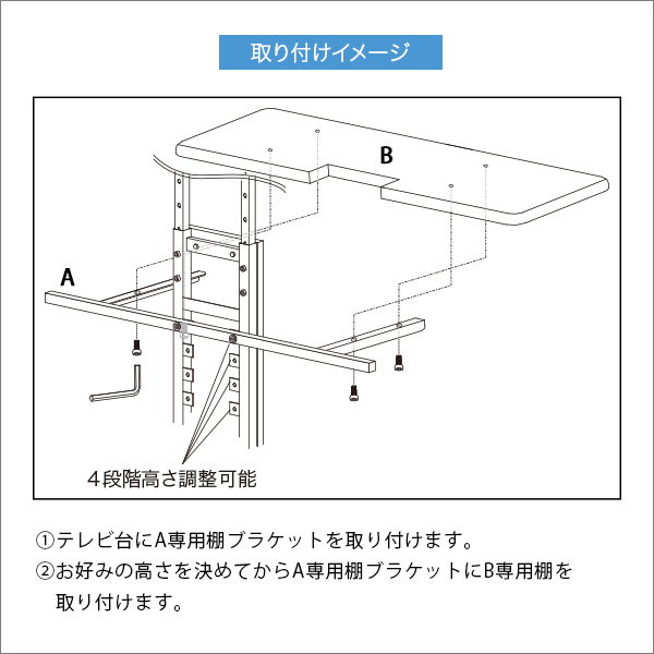 ハイタイプ:10cmピッチで下台から約44cm、約54cm、約64cm、約74cmに設置できます。