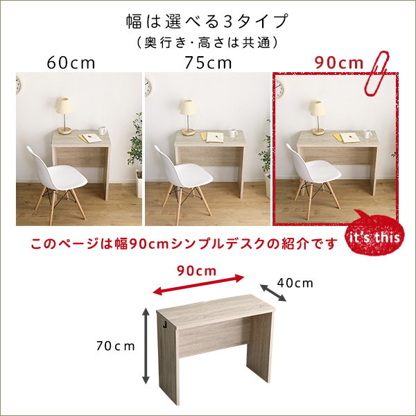 ●子どもから大人まで使えるリビングに合うシンプルデスク90cm幅!